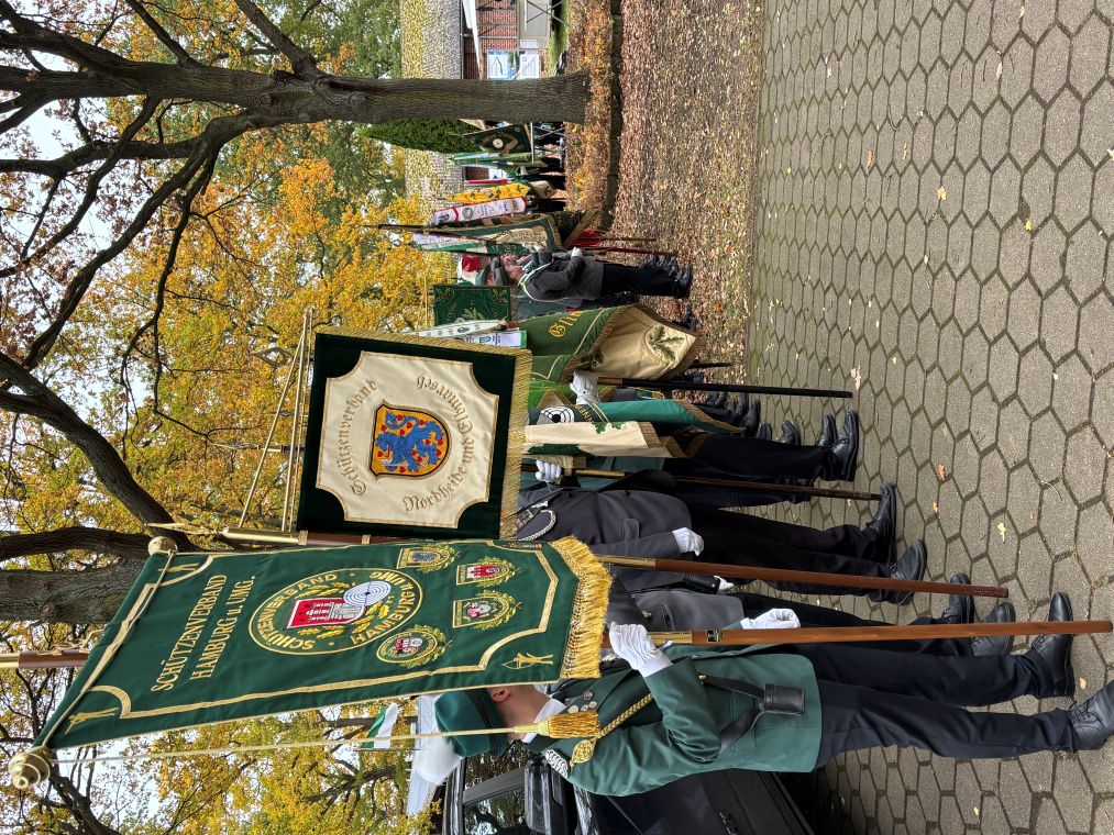 Der Sonntag begann traditionell mit dem eindrucksvollen Wecken durch das Bölleregiment Hamburg. Anschließend marschierten die Schützinnen und Schützen erneut feierlich in die Festhalle ein, bevor der zweite Wettkampfabschnitt über die neuen Landesmajestäten entschied. Die Gewinnerinnen und Gewinner werden offiziell beim Landeskönigsball am 06. Dezember 2025 proklamiert und mit den Königsketten ausgezeichnet.